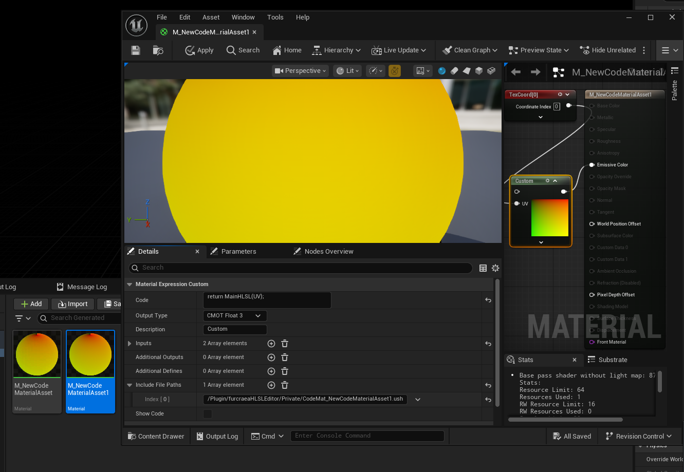 コンテンツブラウザで右クリック>Miscellaneous>Code Material Assetを作成